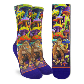 Women's Bigfoot Eating Mushrooms Socks: Shoe Size 5-9