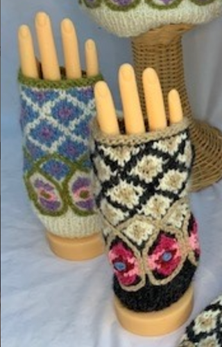 Hand Knit Vintage Checker Fingerless Mittens -Ivory