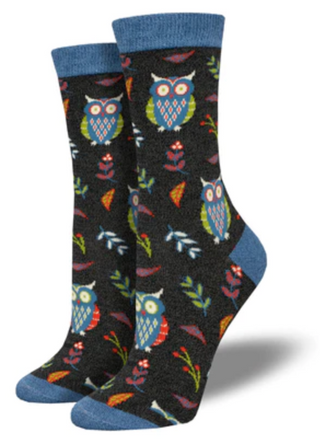 Women's Bamboo Cute Hoot Crew Sock -Navy Heather