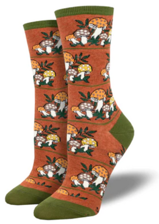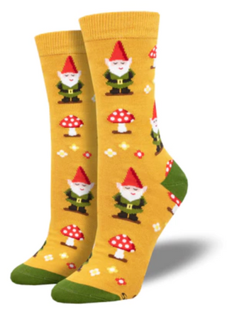 Women's Bamboo Gnome More Mushrooms Crew Sock -Gold