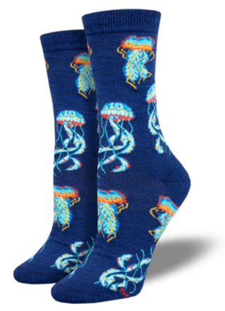 Women's Bamboo Deep Sea Jellies Crew Sock -Navy